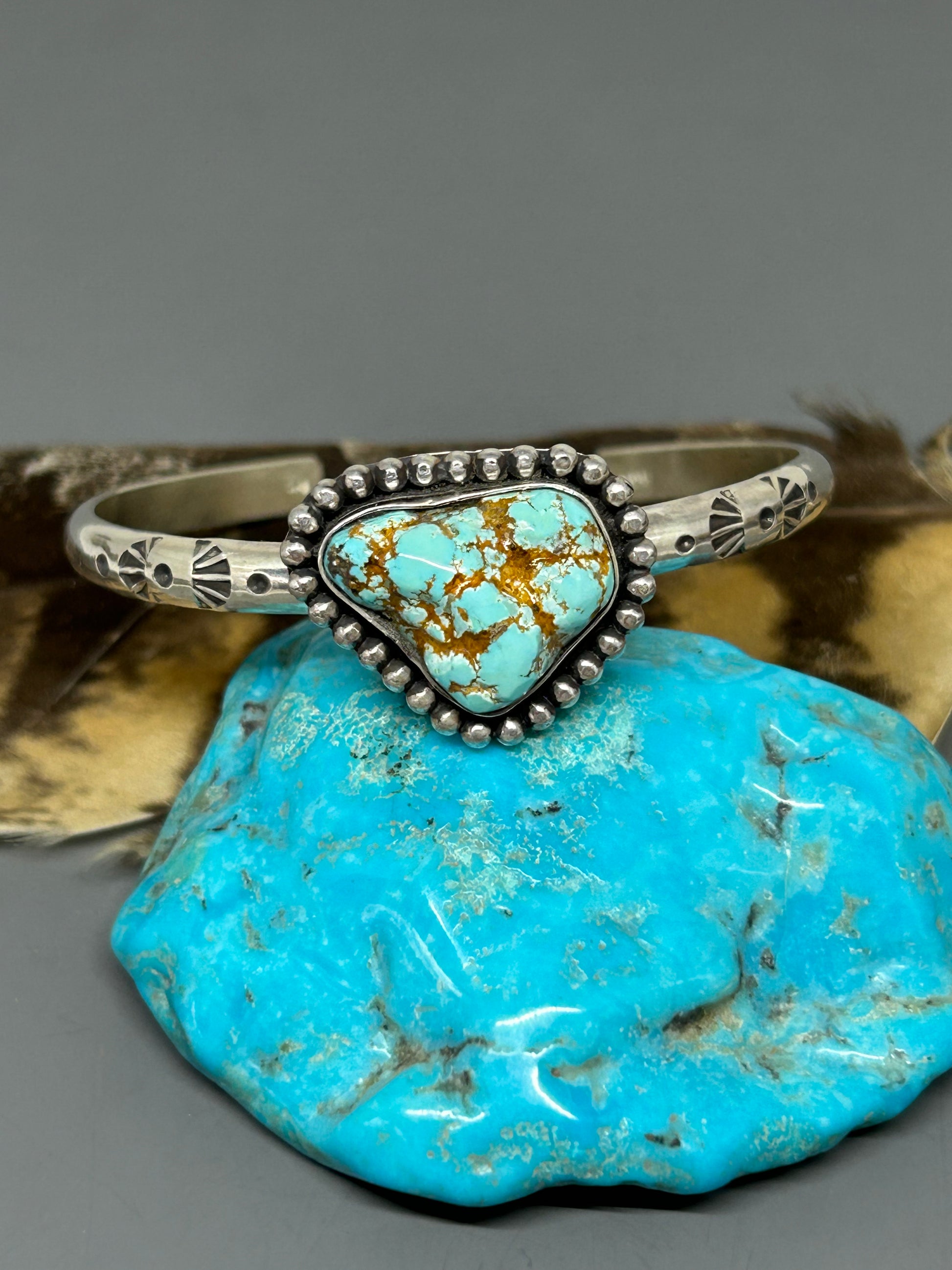 Bold handcrafted cuff bracelet with Godber Turquoise.