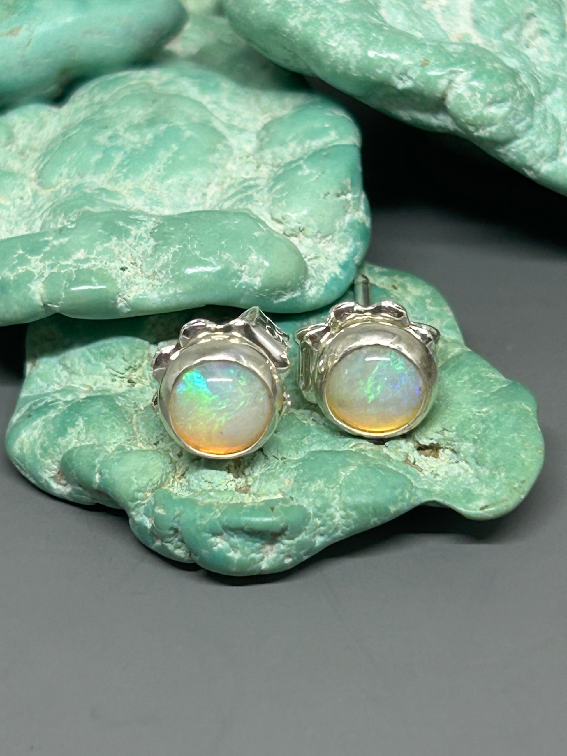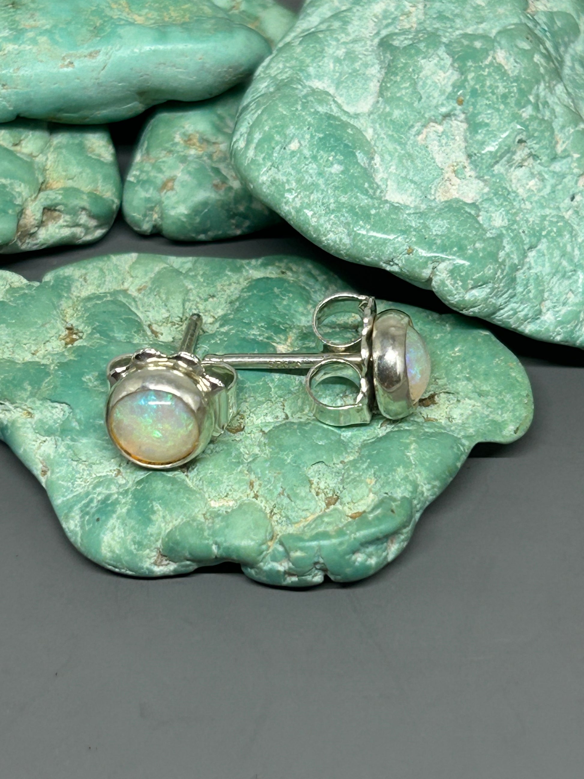 These opal studs bring a flash of color and light in a simple, timeless design.