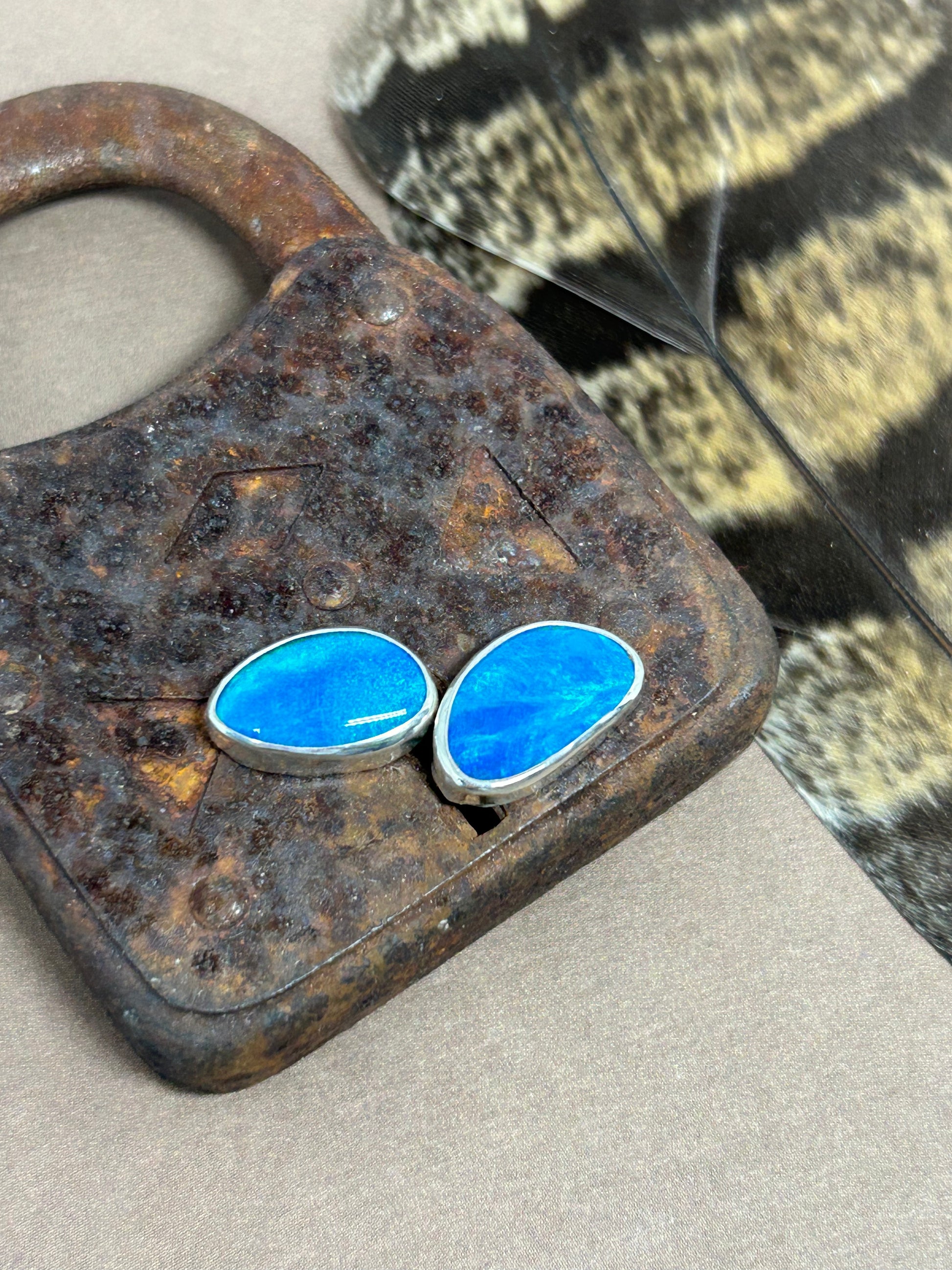 Opal doublet cabochons set in sterling silver with sterling silver posts and ear backs.