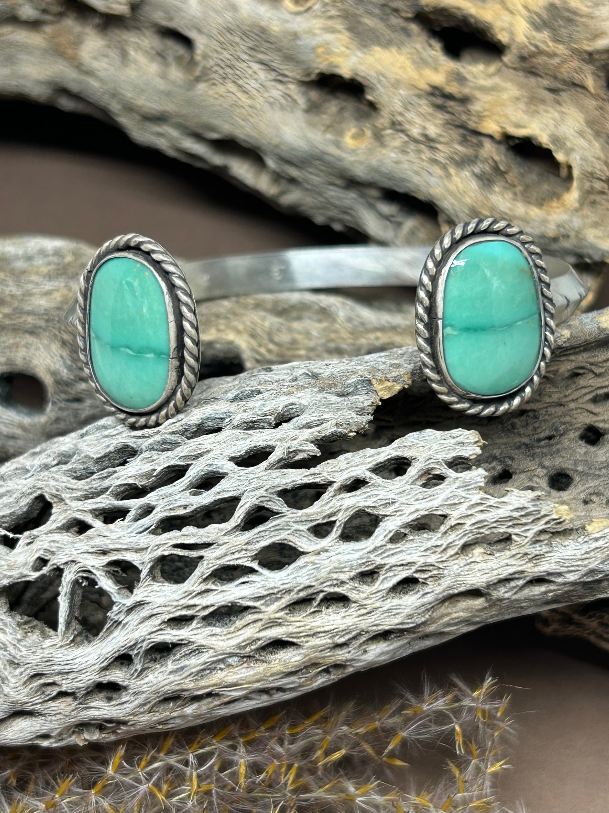 The open design makes it easy to wear daily, while the turquoise invites balance and connection to the earth.