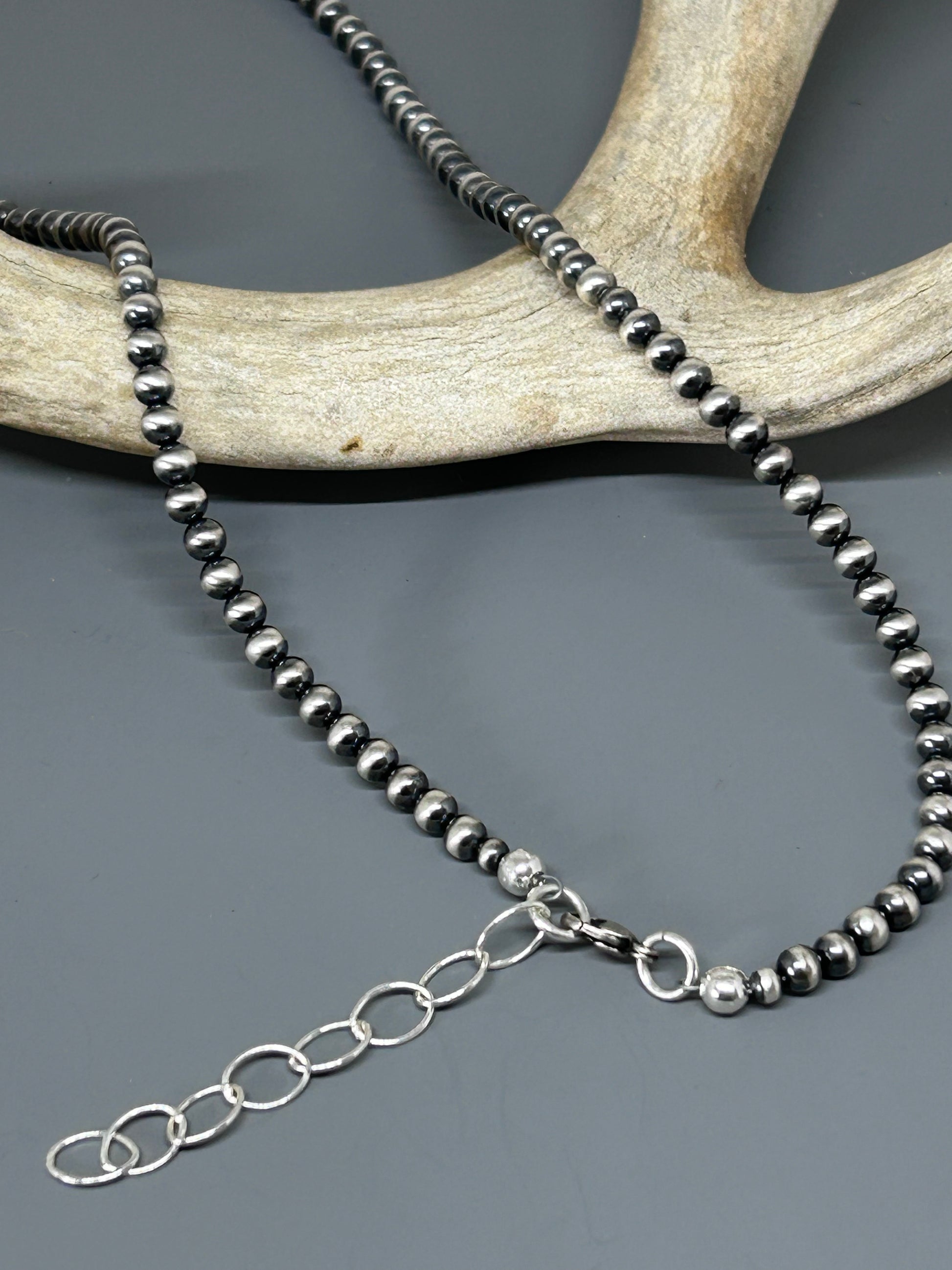 Sterling silver 4 mm round beaded necklace 16 inches long with a 2 extension.
