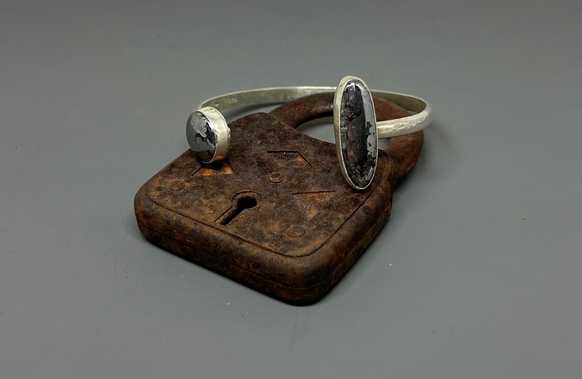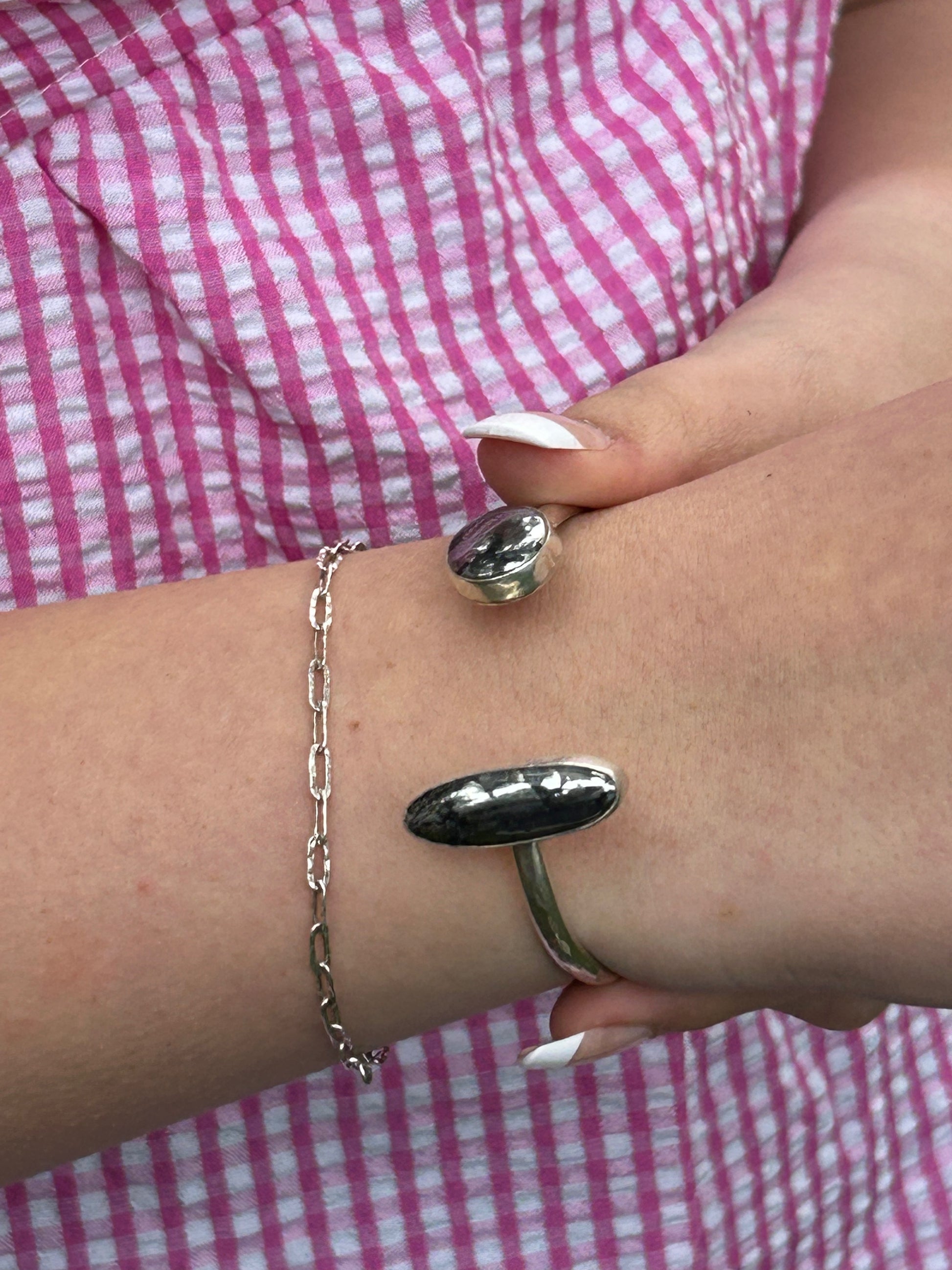 Hematite Sterling Silver Reverse Cuff Bracelet